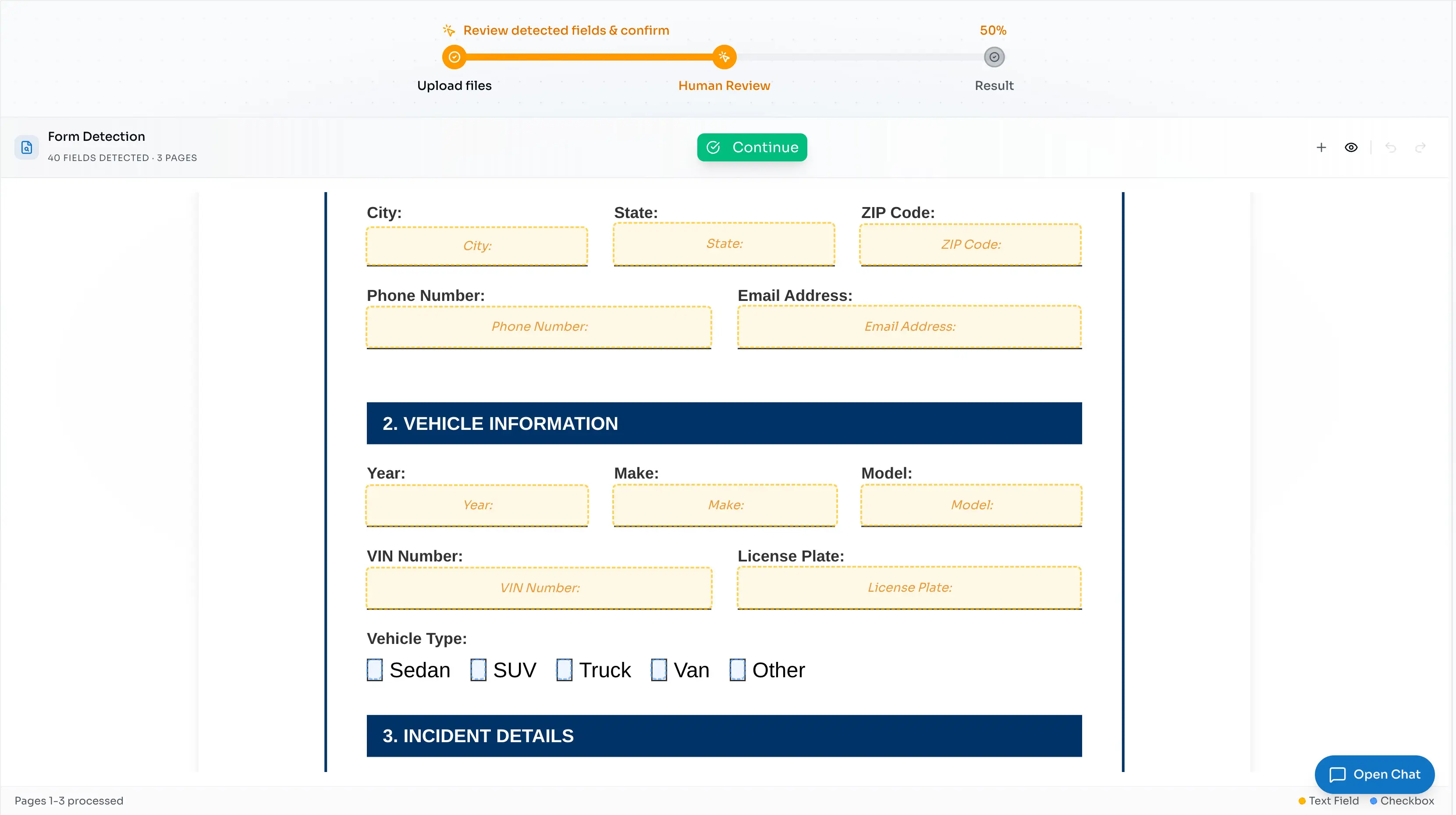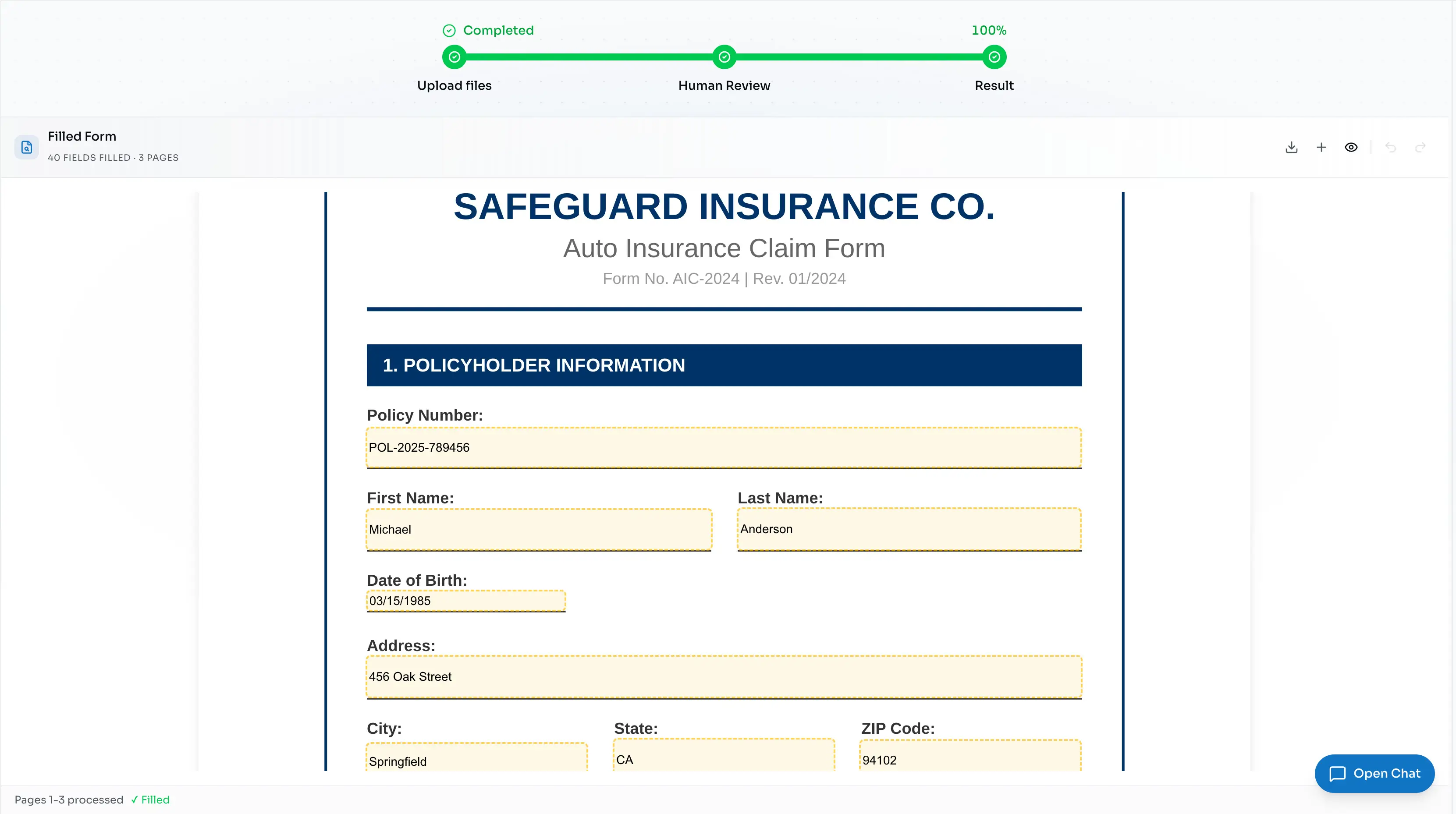 Experimente agora grátisDo envio de documentos à exportação de dados, nossa plataforma com IA cuida de cada etapa do seu fluxo de trabalho de seguros com precisão e velocidade.